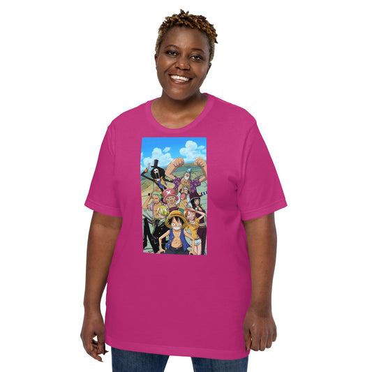 "Ma collection de t-shirts et d'accessoires One Piece célèbre le voyage de Luffy et de ses compagnons à travers des imprimés vibrants et des designs uniques. Rejoignez l'équipage et naviguez dans le monde passionnant de One Piece avec style et détermination !"